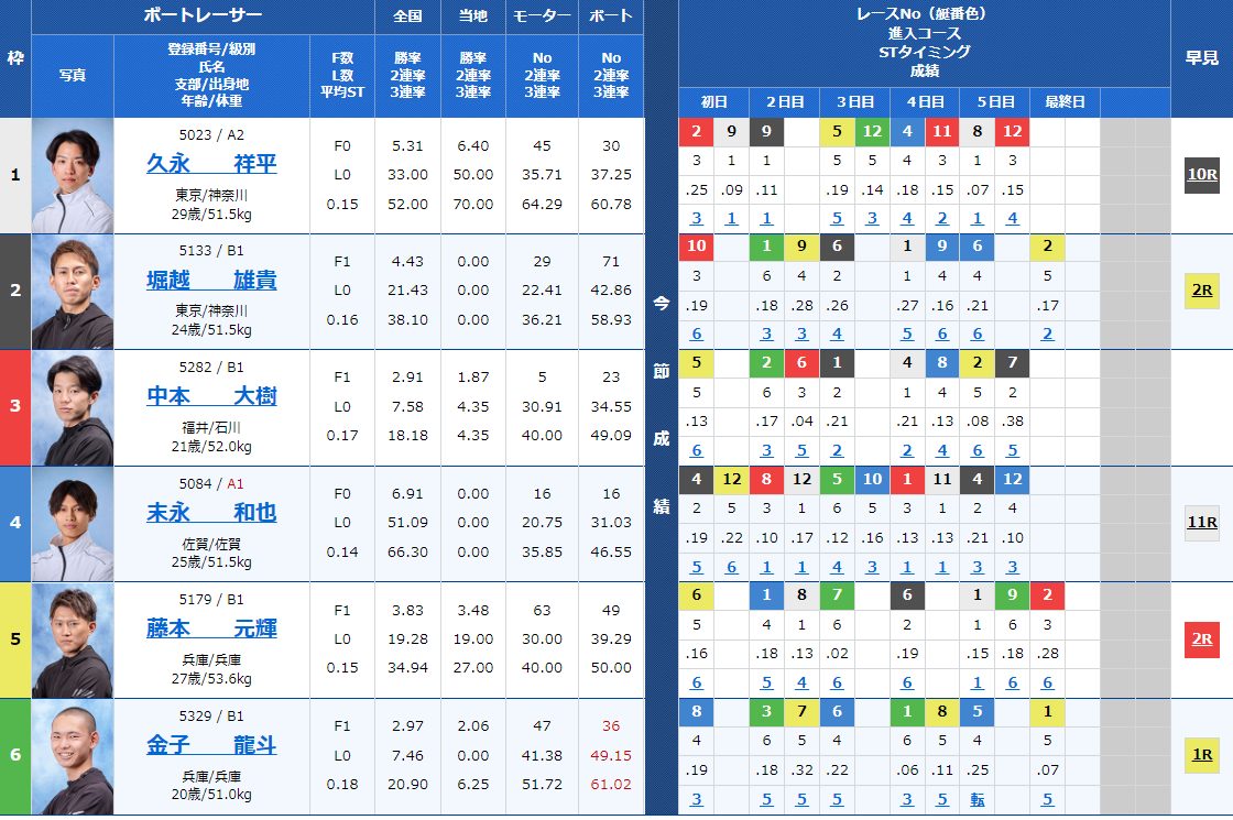 出走表は競艇の各レースで必ず確認できるもので、レースの勝敗を決めるポイントを見極める力が大切です。
